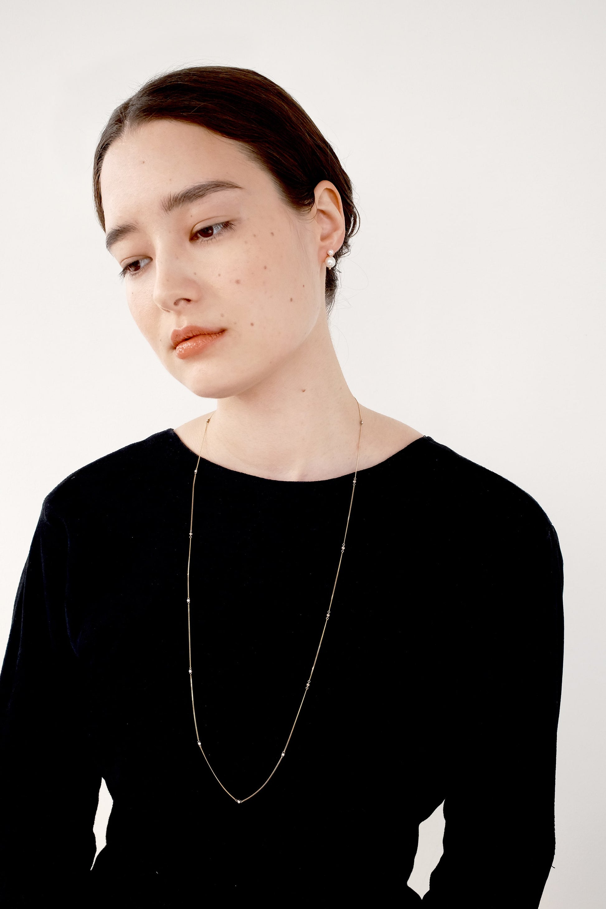 展開は 42cm と 90cm の2種類。身に着ける方のアイデア次第で、様々な楽しみ方ができるネックレスです。
